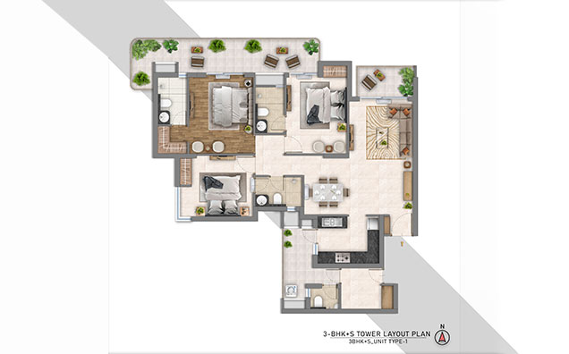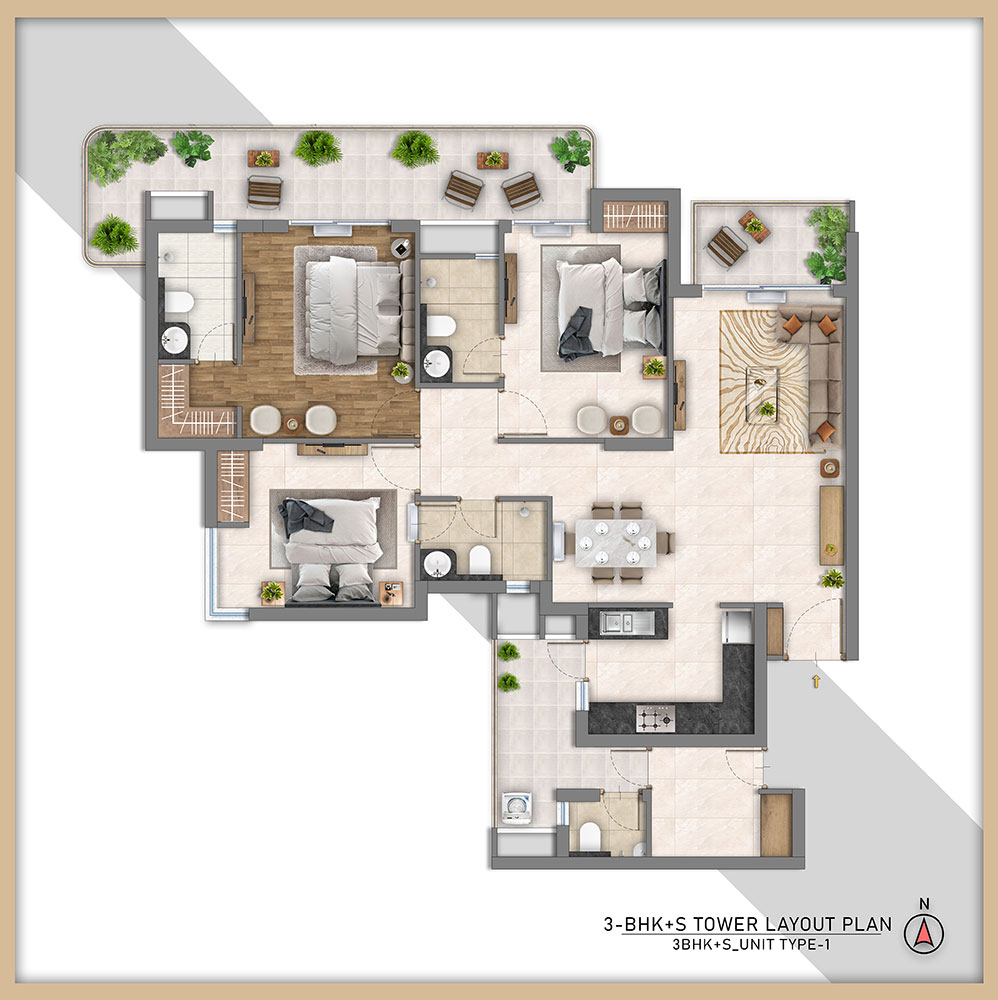 3BHK+S Type 1 (3D)
