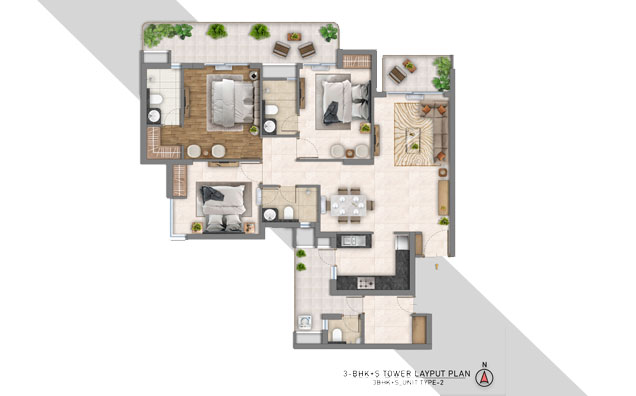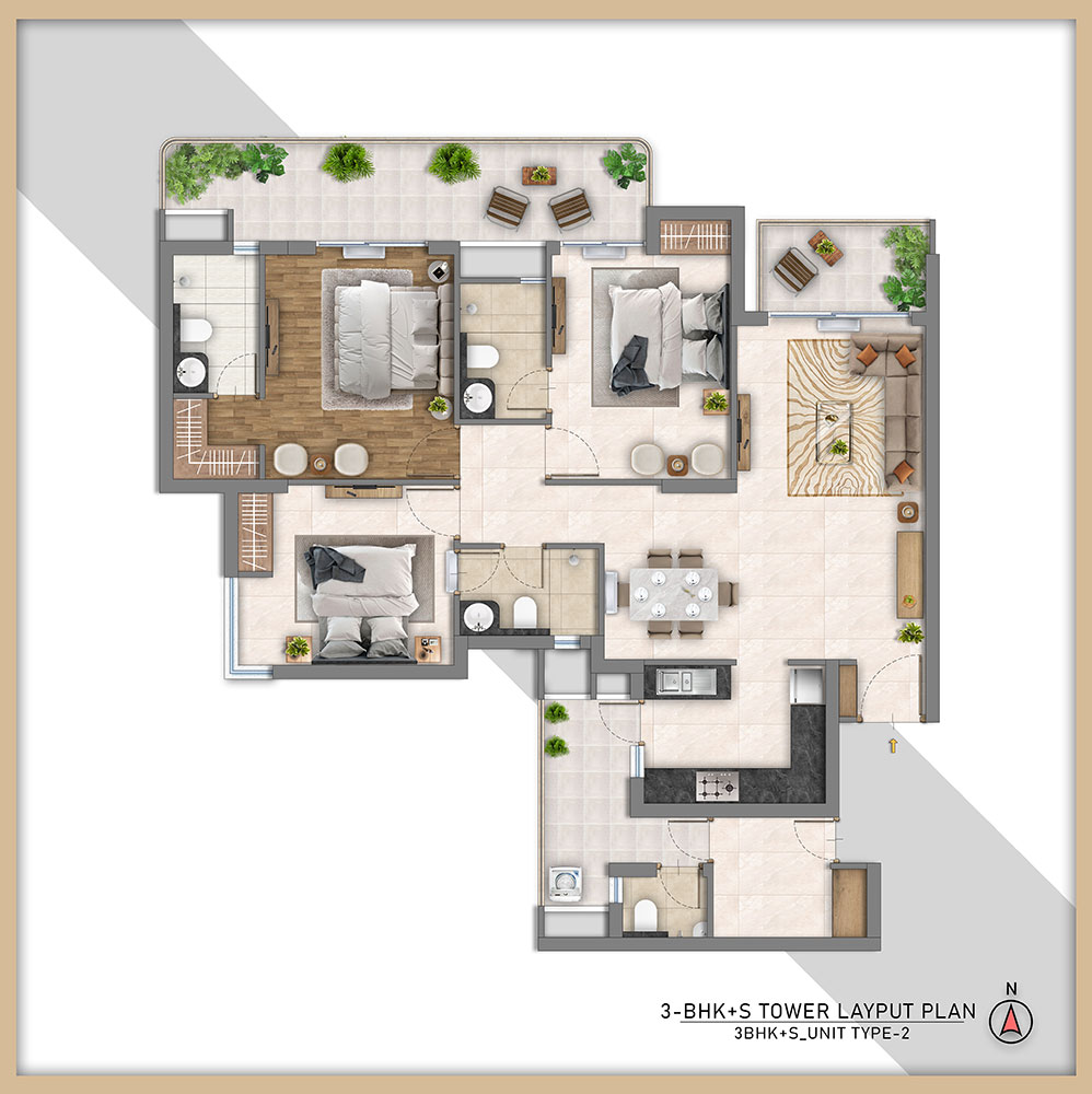 3BHK+S Type 1 (2D)