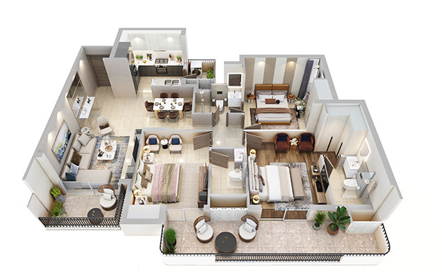 3BHK Type 4 (3D)